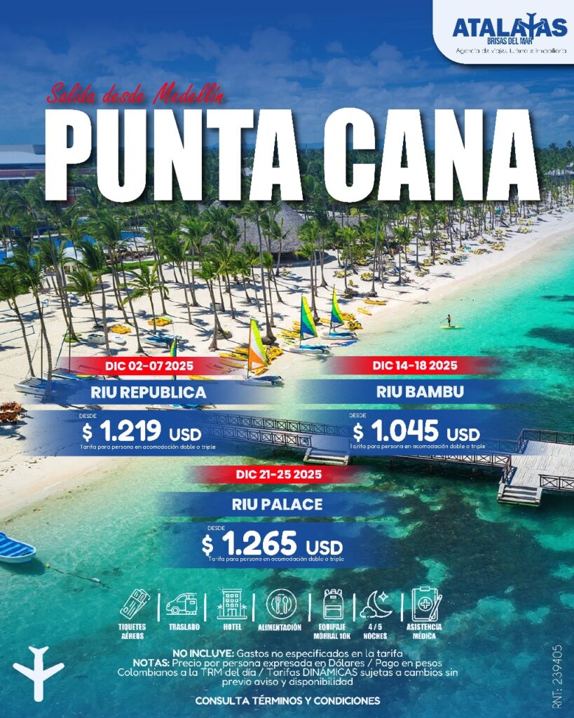 Nuestra agencia te invita a vivir el paraíso en Punta Cana, el destino Todo Incluido por excelencia, con kilómetros de playas de arena blanca y aguas turquesa cristalinas. Olvídate del estrés con un paquete que incluye resorts de lujo, emocionantes excursiones a Isla Saona o cenotes, y toda la relajación que mereces. ¡Reserva hoy y sumérgete en el sol, la fiesta y la belleza incomparable del Caribe dominicano!